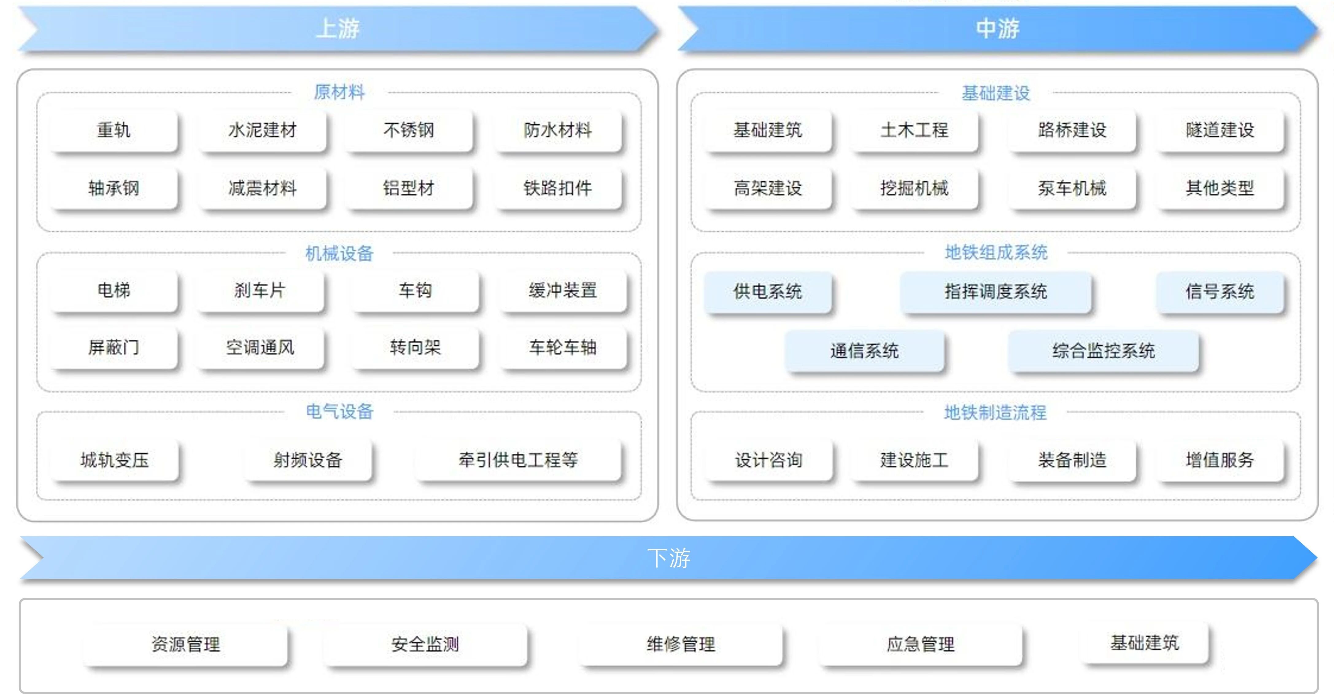Trenbide-garraioak hiri-industriak lotzen ditu, industria-katearen hedapena sustatzen du eta laguntza-industrien garapen azkarra bultzatzen du, hala nola ekipamenduen fabrikazioa eta I+G teknologikoa. Metroaren industria-katea 3. irudian ageri da, non lotura guztiak elkarren menpekoak diren eta hiri-agglomerazioen eta metropoli-eremuen garapen ekonomikoa bultzatzen dutenak.[2]