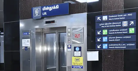 Bidaiariak modu eraginkorrean eta erosoan sartu daitezke geltokietara, transferitu edo irten daitezke igogailu bertikalak hartuta. Igogailuen motorren maila teknikoak funtsezko eginkizuna du bidaiarien ibilaldiaren esperientzia bermatzeko. Nidec KDS-k 60 urte baino gehiago daramatza motorren industrian oso arduratuta. Bere produktuek nazioartean aurreratutako teknologiaren diseinua, ekoizpen bikaina eta kalitatearen kudeaketa integratzen dituzte. Kalitate handiko produktuekin eta zerbitzu sistema integralarekin, igogailuen trakzio-makinak egonkor hornitu ditu Indiako bezero handientzat metroko proiektuetan hamarkada bat baino gehiagoz.