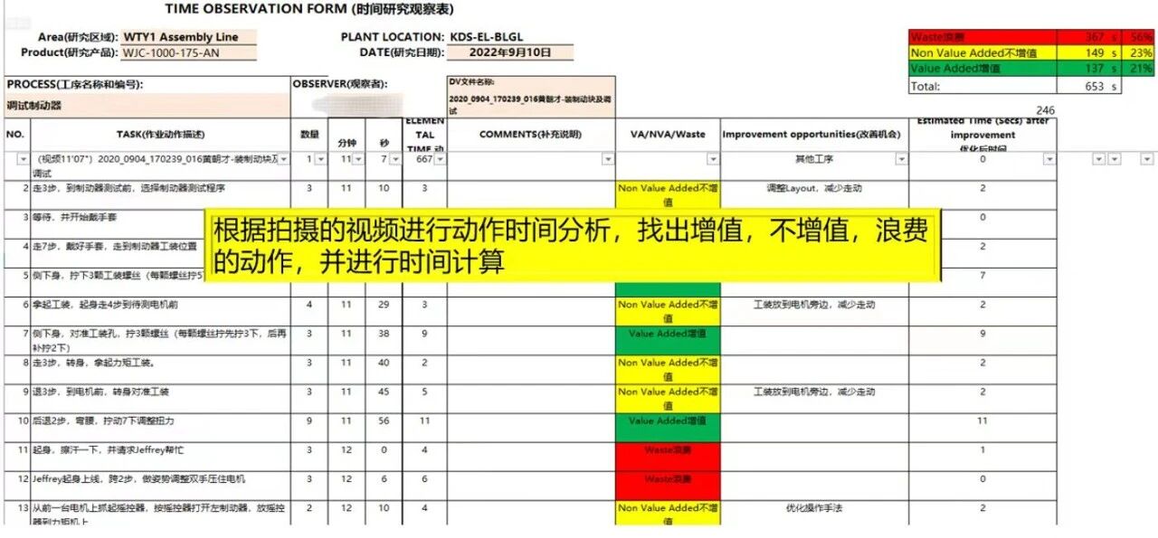Hobekuntza sistematikoko lehen tresna barnean sartu zenez, denboraren azterketak hobekuntza esperientzia sendoa pilatu du. Era berean, aitzindaria izan zen VSM hobekuntza-proiektu orokorrean, aurreko hobekuntzen jarraipen gisa eta proiektuaren ondorengo hobekuntzetarako lotura gisa. Hobekuntza-taldeek langile dedikatua esleitu zuten prozesu bakoitzean langileen eragiketak filmatzeko lanaldi-printzipio estandarren arabera. Taldeko kideek eta lehen mailako langileek elkarrekin bideoak behin eta berriz berrikusi zituzten, lan-mugimenduak deskonposatu eta aztertu zituzten, eta ideia-jasa kolektiboa egin zuten hobetzeko aukerak identifikatzeko eta iradokizunak proposatzeko, azken finean, hobekuntza-plan bat formulatuz.