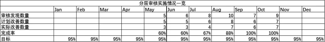 Geruza prozesuen auditorien edukia zabala da. Ikuskapenen eraginkortasuna eta kalitatea kontrolatzeko, LPAren benetako inplementazioa arbelaren antzeko moduan agertzen da. Bistaratutako edukiak barne hartzen ditu: ezarpen-tasa osatzeko, ikuskapen-aurkikuntza kopurua, hobekuntza-tasa eta abar.