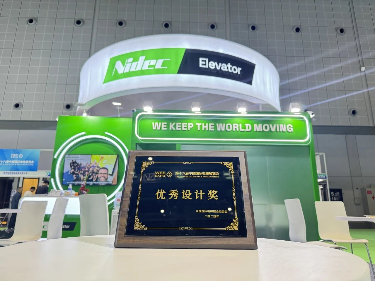 2024ko maiatzaren 8tik 11ra NECC-n (Shanghai) arrakastaz amaitu zen 16. Munduko Igogailuen eta Eskailera Mekanikoen Erakusketa (WEE). Lehen aldiz, KDS-k distira egiten du WEE honetan NIDEC ELEVATOR Components-ekin. NIDEC ELEVATOR-en logotipo berria oso deigarria da. Kabina kolore bizikoa da, sinplea eta bakarra, NIDEC Taldearen berdearen nazioarteko irudia erakusten duena, bisitari asko argazkiak ateratzera erakartzen dituena. NIDEC standak WEEren antolakuntza-batzordeak emandako "Diseinu Bikainaren Saria" ere irabazi zuen.