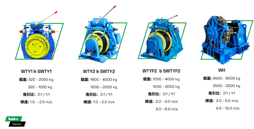 • Bloke motako balaztak eta euskarri bikoitzeko egitura hartzen ditu diseinuan, 15T-ko karga axialeko ahalmenarekin, makinaren errendimendu orokorra egonkor eta fidagarriagoa bermatuz; hainbat industria-parkeen garraio-eskakizunak bete ditzake eta industria-igogailuen beharrak guztiz ase ditzake.